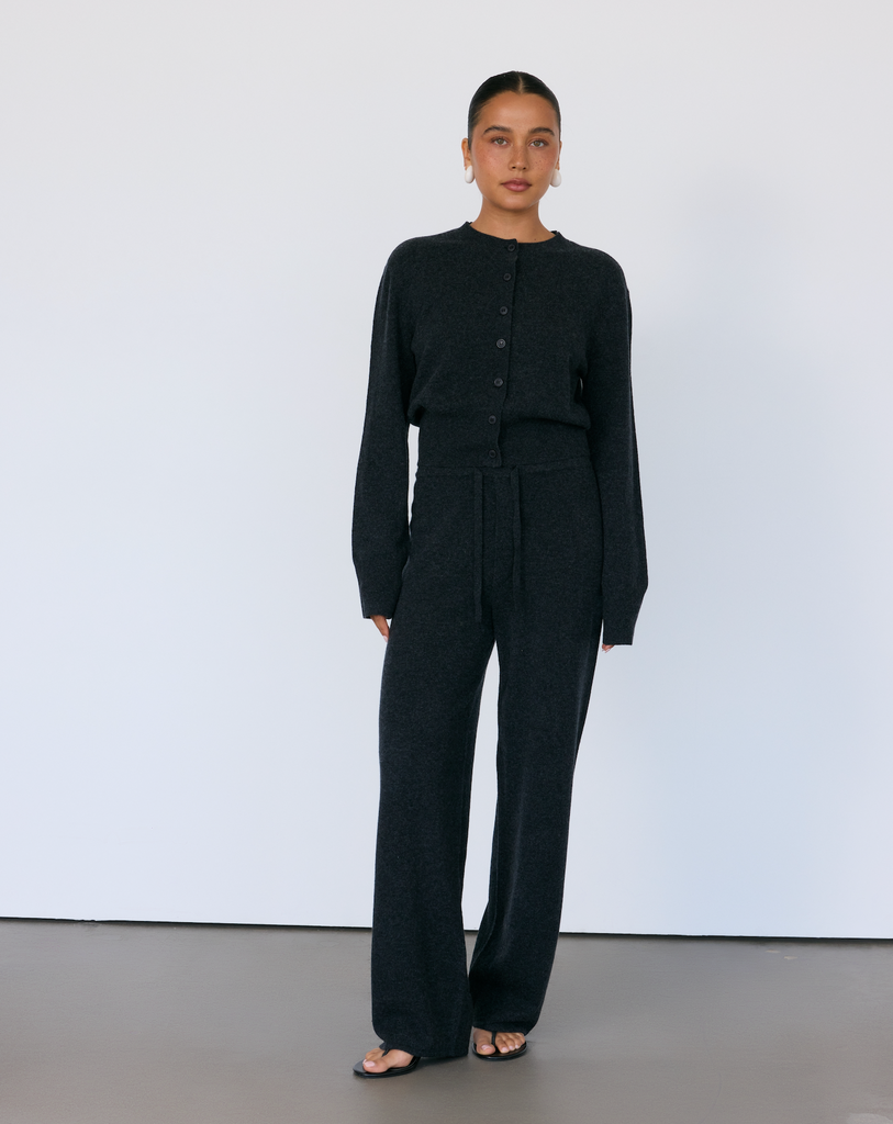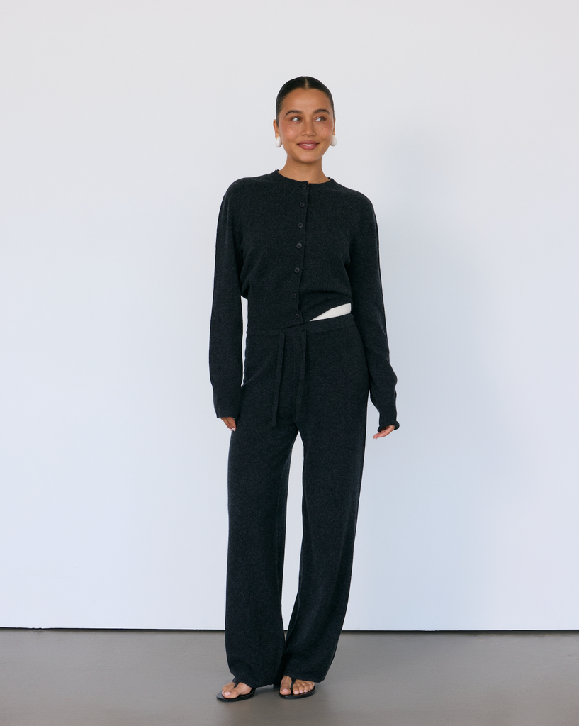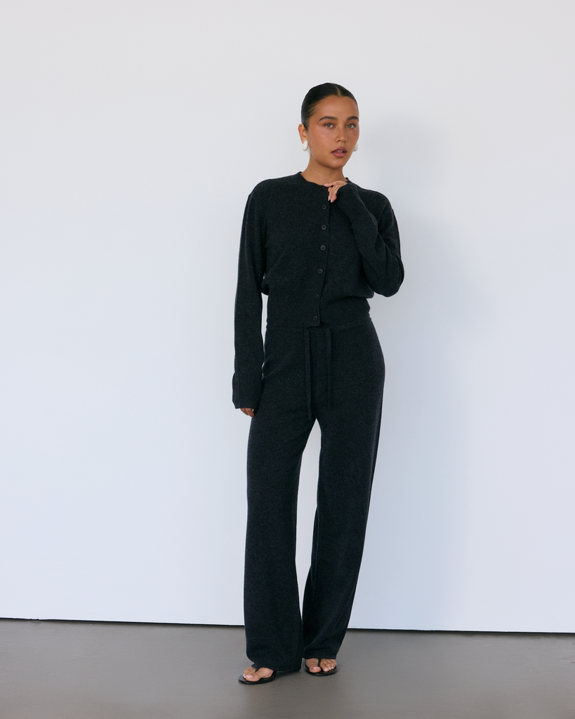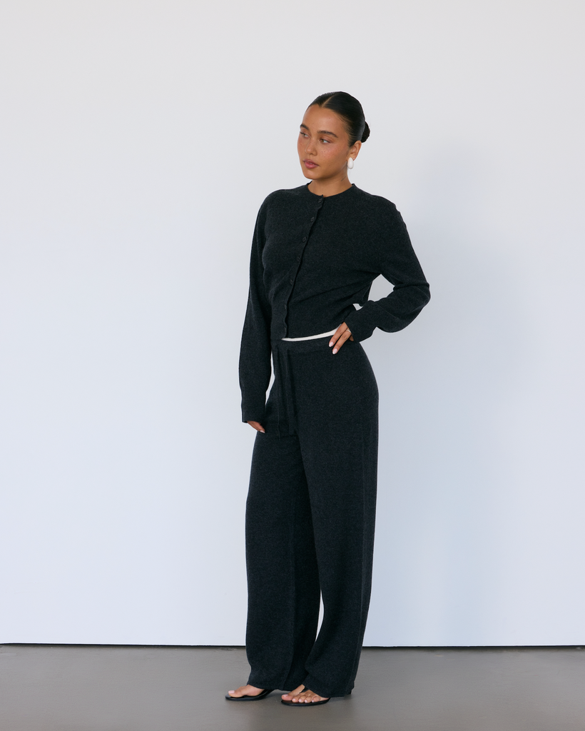 An elevated take on the classic cardigan. With elegant buttons and a wide, flattering rib at the waist, the Tove Cardigan is a no-nonsense wardrobe staple with endless ways to style. This piece was designed as the natural complement to the Tove Pant, but works just as effortlessly layered over a tee or dress for understated polish.