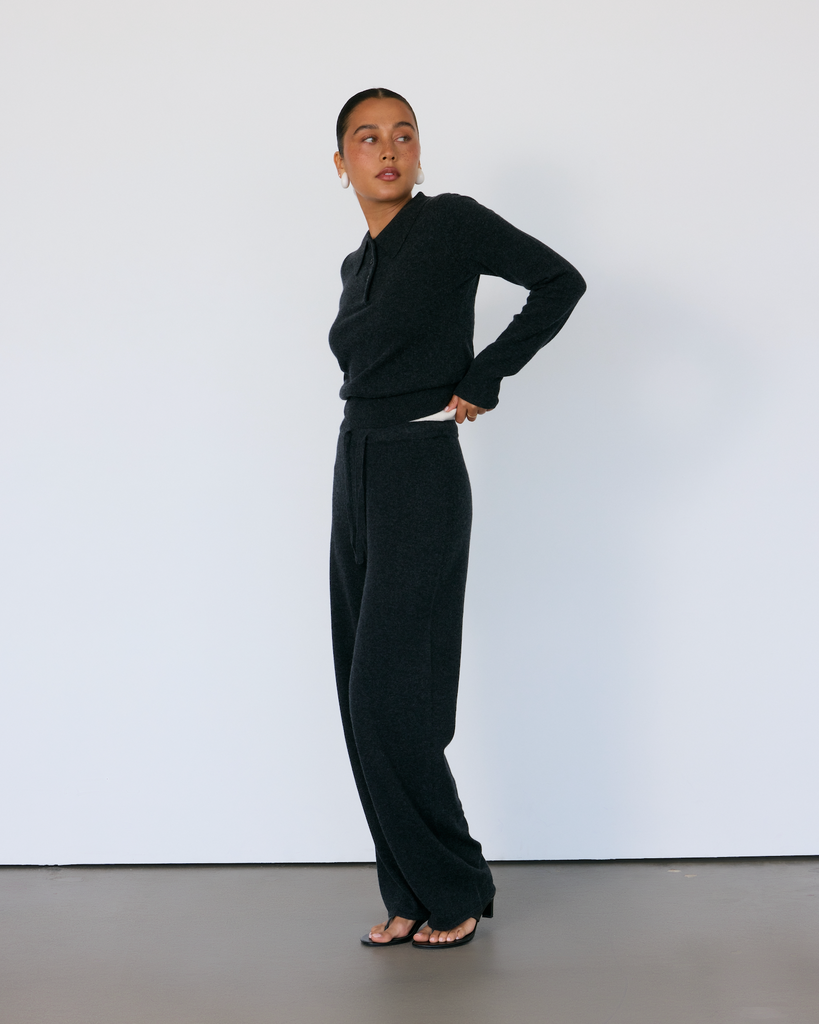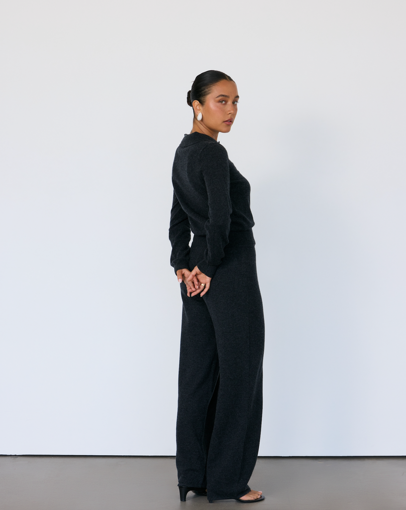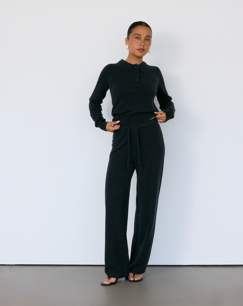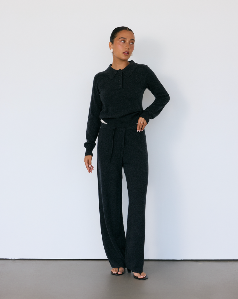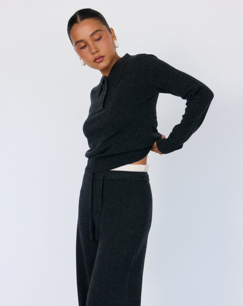 The Tove Polo brings a polished ease to everyday dressing. Spun from an ultra-soft cashmere blend, it sits neatly at the waist with a ribbed hem and buttons through the front. The open collar gives it a relaxed sensibility, making it just as effortless with trousers or denim as it is with the matching Tove Pants.