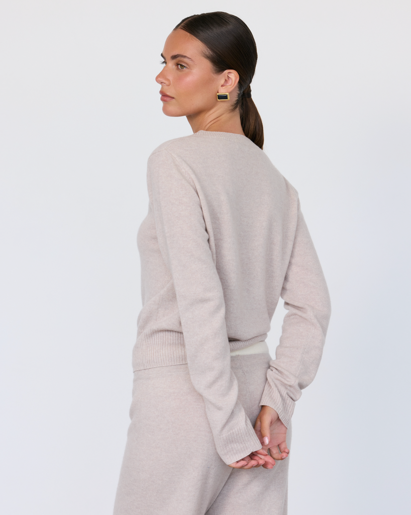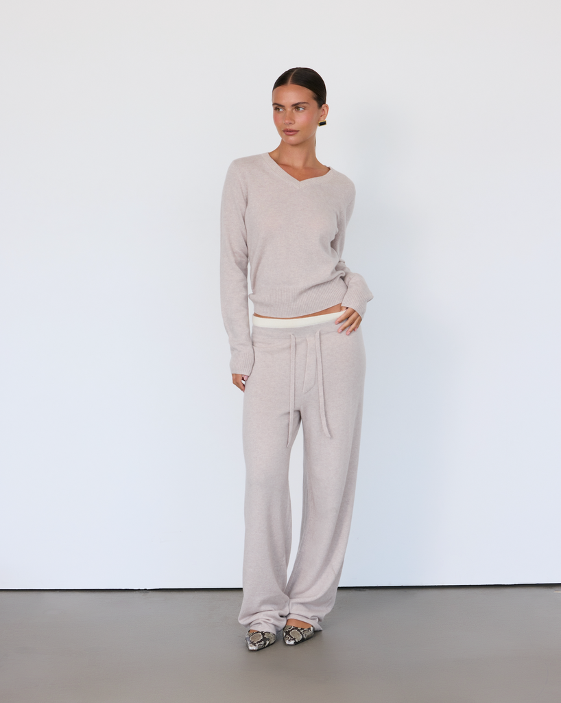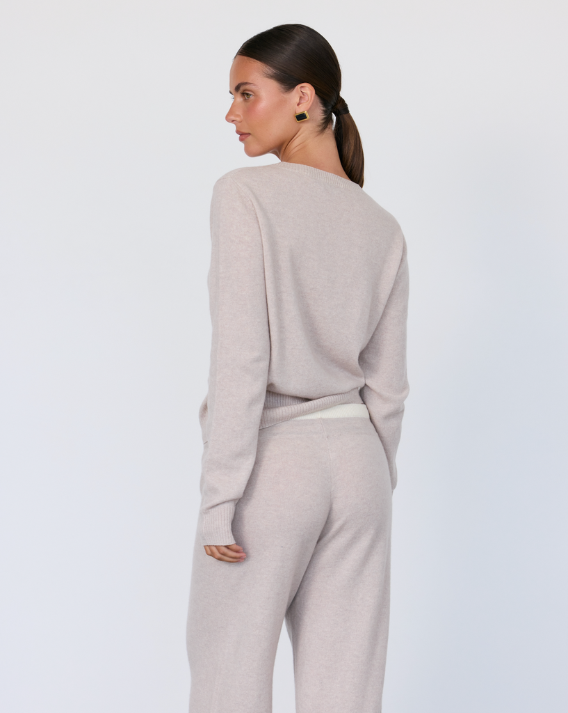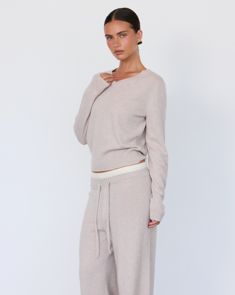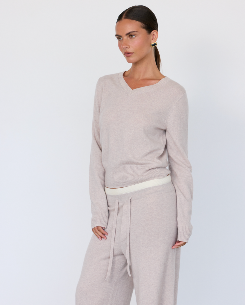 The Tove V-Neck is simplicity in its most refined form. Crafted in a soft cashmere blend, the silhouette is cut with a subtle V-neck that elongates and reveals, framed by clean ribbing and a relaxed drape. It’s a study in balance: sensual yet restrained, versatile yet distinct. Worn alone, it speaks in quiet confidence; layered, it becomes the grounding element of a modern wardrobe.