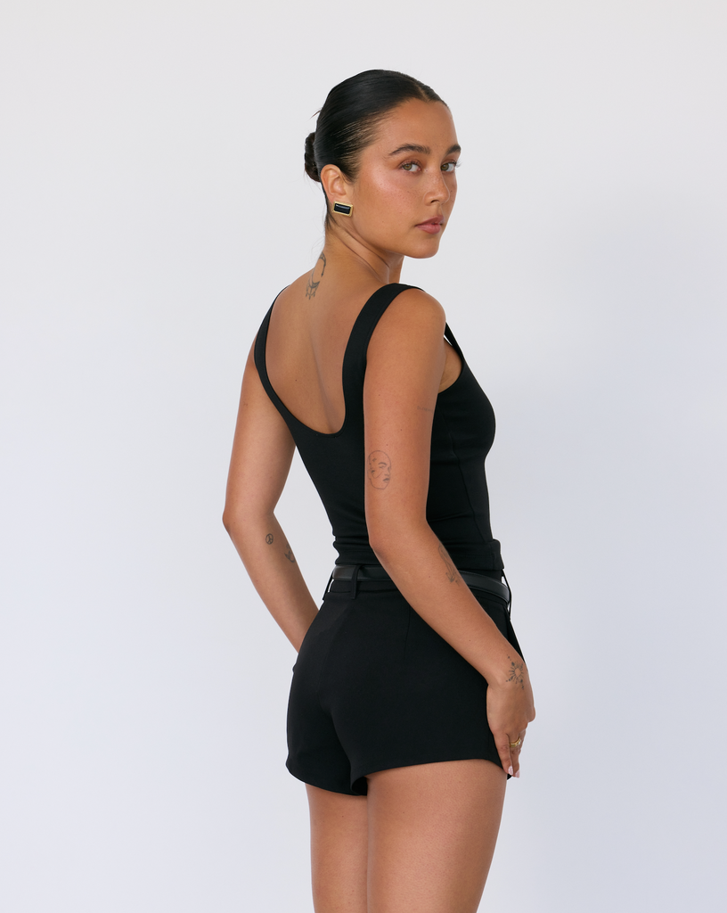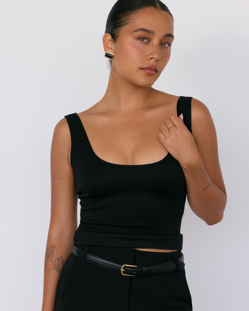 A refined essential with structure and ease. The Inez Tank features thick, wide straps and a body-hugging silhouette designed to flatter and support—perfect for going braless. Crafted in a luxe, softly structured fabric, it skims close to the body while offering a clean, minimal shape. A modern layering piece or a standalone statement, Inez is effortless, versatile, and made to wear on repeat.