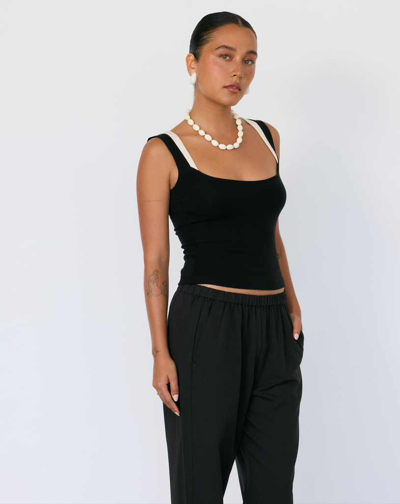 The Iris Tank is crafted in a buttery soft fabric with a subtle layered effect that adds depth to a classic silhouette. Its body-skimming fit feels effortless against the skin, while the lightweight drape makes it ideal for everyday wear. Minimal and versatile, Iris works as a stand-alone piece or as a base layer in your uniform.