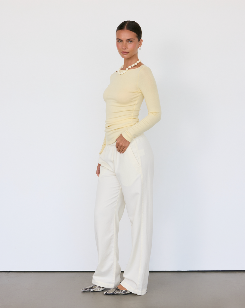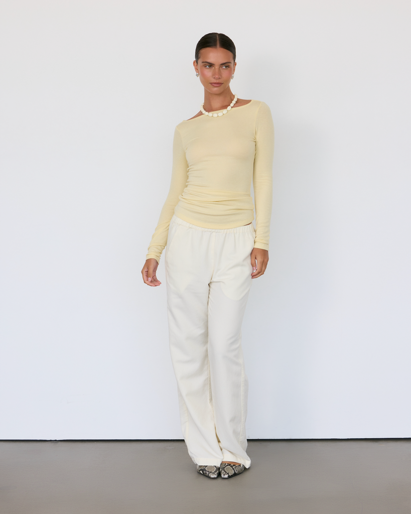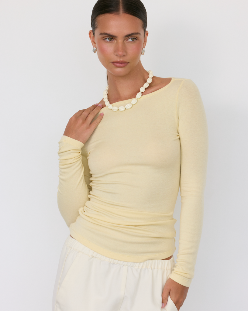 The Lane Boatneck Top is a study in quiet luxury, crafted from a soft, lightweight knit that drapes effortlessly across the body. Its wide neckline frames the collarbone with understated elegance, while the relaxed silhouette makes it endlessly versatile.