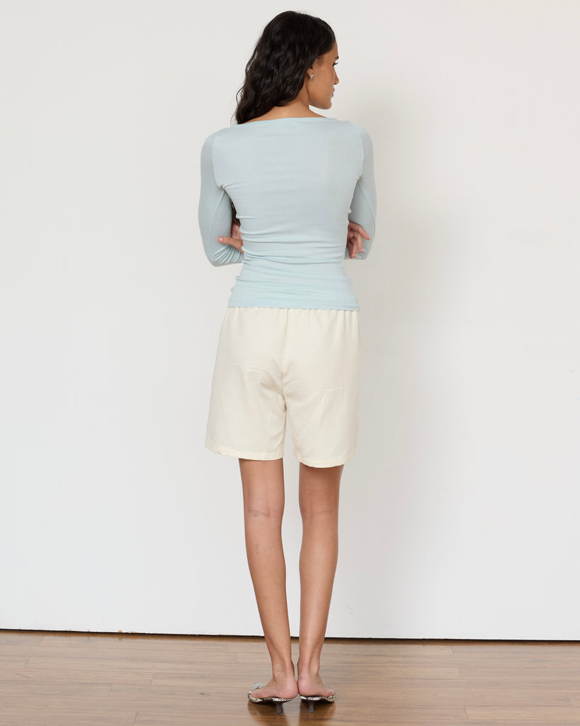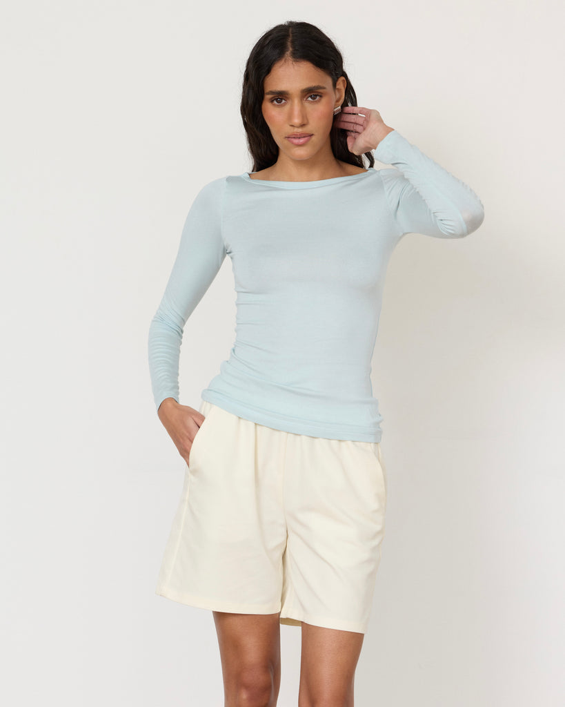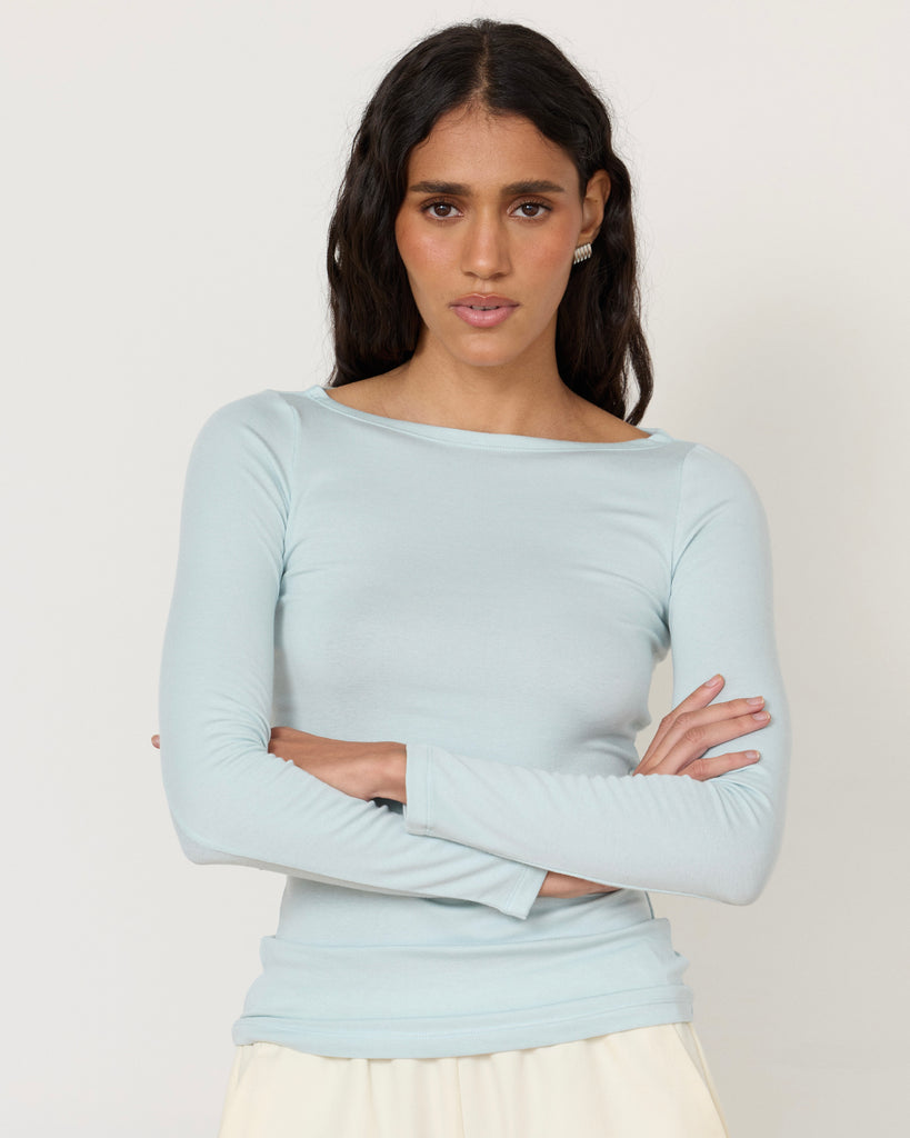 The Lane Boatneck Top is a study in quiet luxury. Crafted from a soft, lightweight knit that drapes effortlessly across the body, Lane features a wide neckline and a full length hemline designed to hit at the hip bone. Style with trousers for an elevated office look, with sweatpants for lounging or jeans for a casual daytime moment.