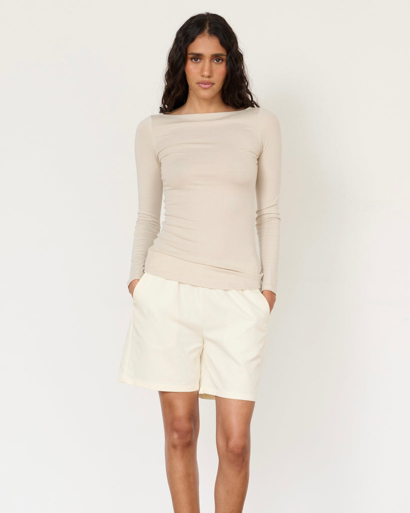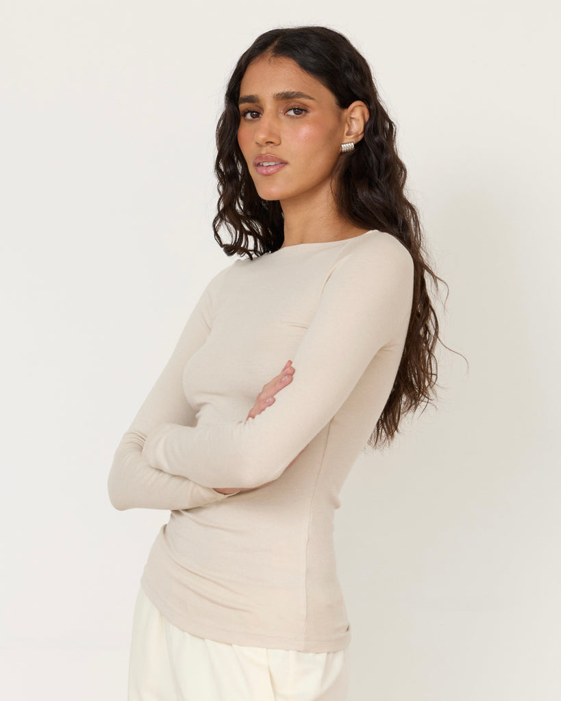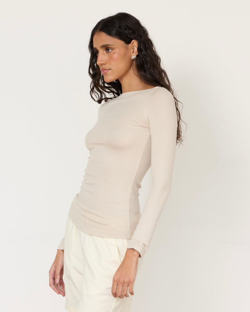 The Lane Boatneck Top is a study in quiet luxury. Crafted from a soft, lightweight knit that drapes effortlessly across the body, Lane features a wide neckline and a full length hemline designed to hit at the hip bone. Style with trousers for an elevated office look, with sweatpants for lounging or jeans for a casual daytime moment.