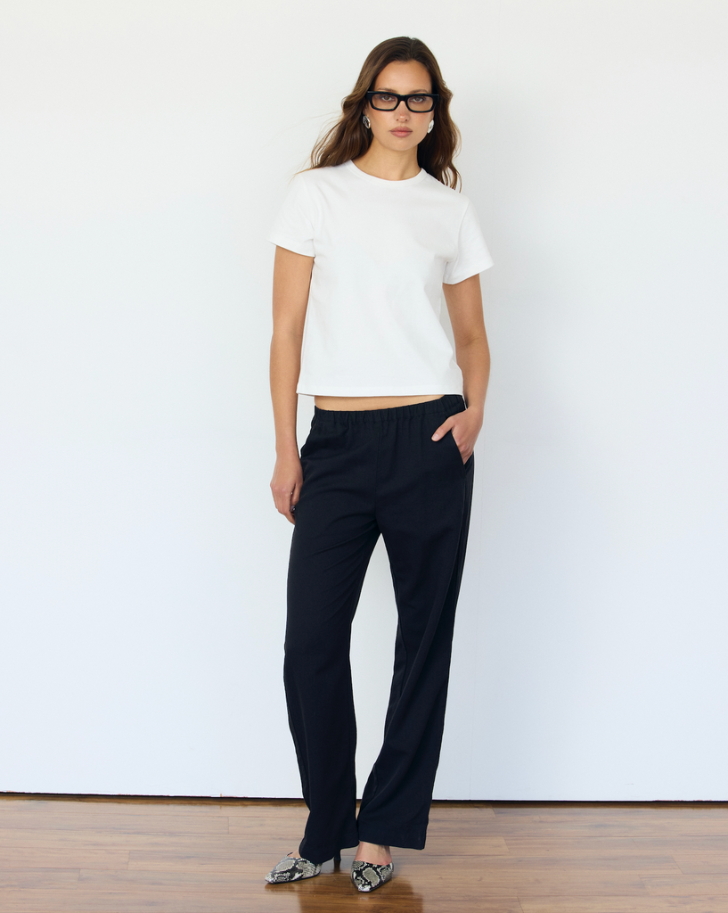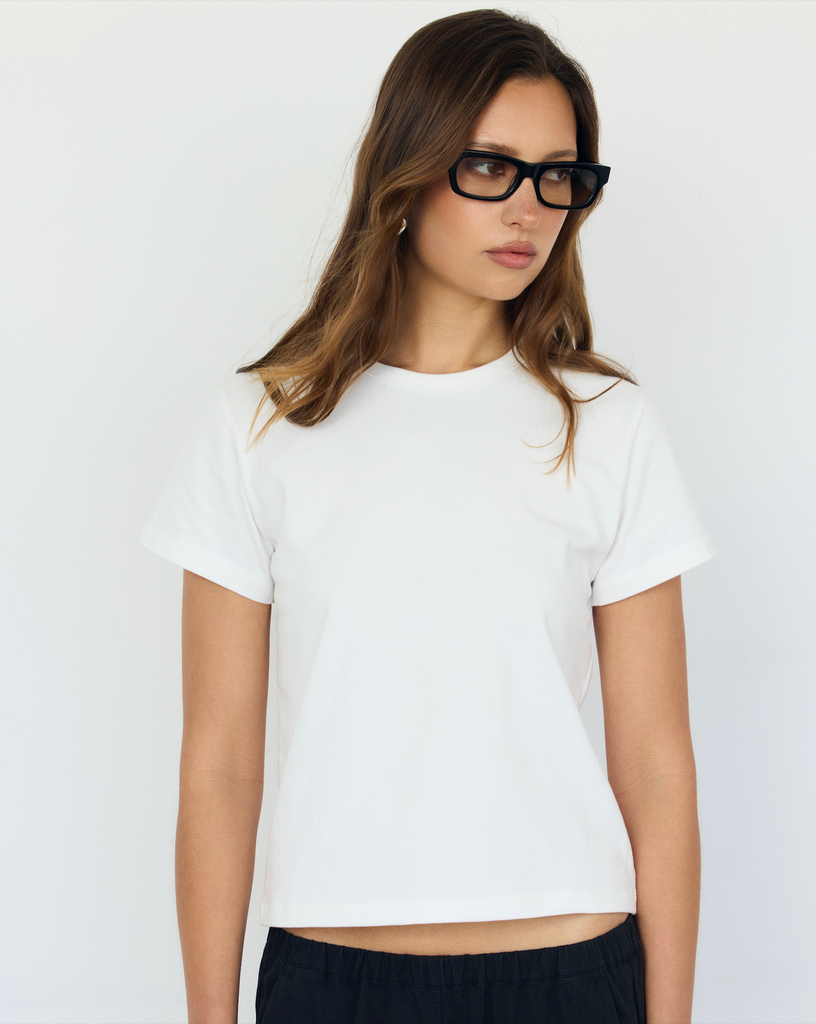 The classic white tee, perfected. Cut from a structured, heavyweight 100% cotton with a softly cropped silhouette, The Reese Tee is your go-to for elevated minimalism. Clean lines, a crisp neckline, and a fit that strikes an ideal balance between boxy and tailored, it's the perfect base for any outfit this season.