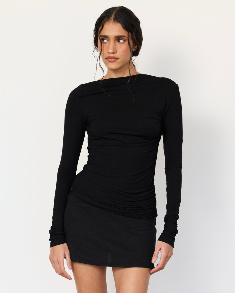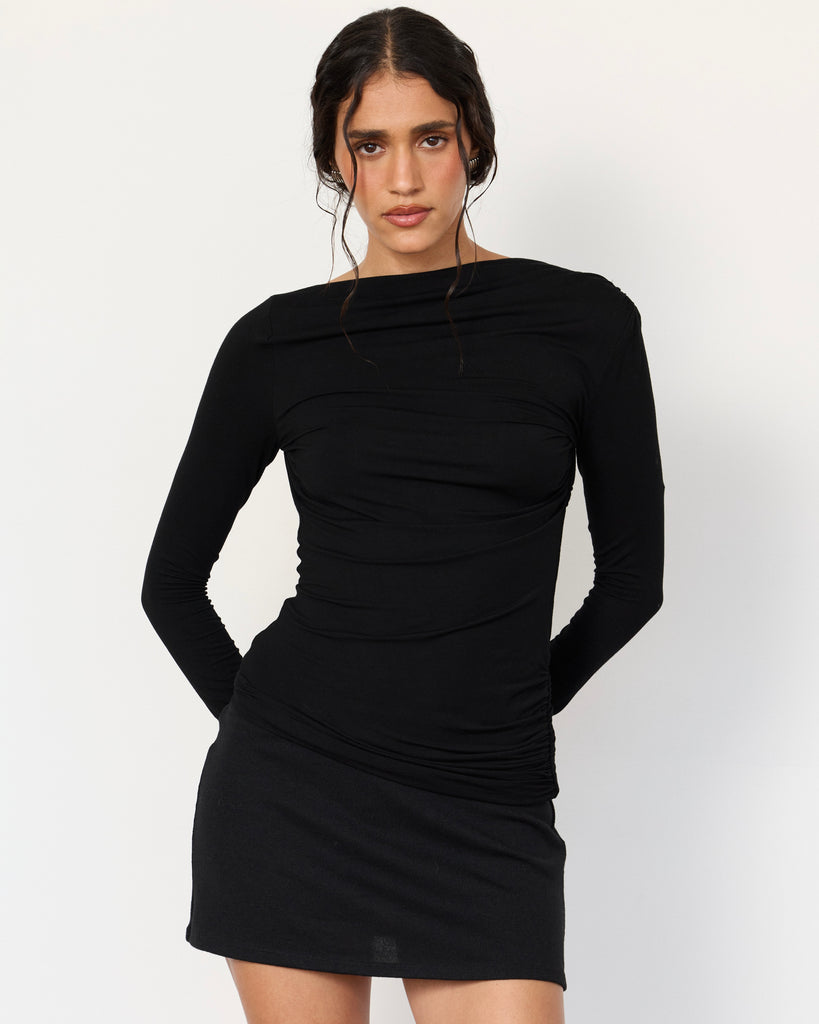 Meet the Romy Top, the Romy Mini's chic younger sister. Cut in the same soft, sculpted stretch jersey as our best selling mini dress, the Romy Top is sure to be a staple piece in your night-out wardrobe. The top features precise ruching, elegant draping and an entirely open back. You're sure to turn heads in this one.