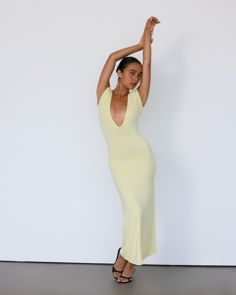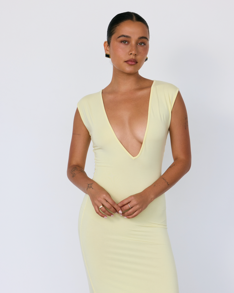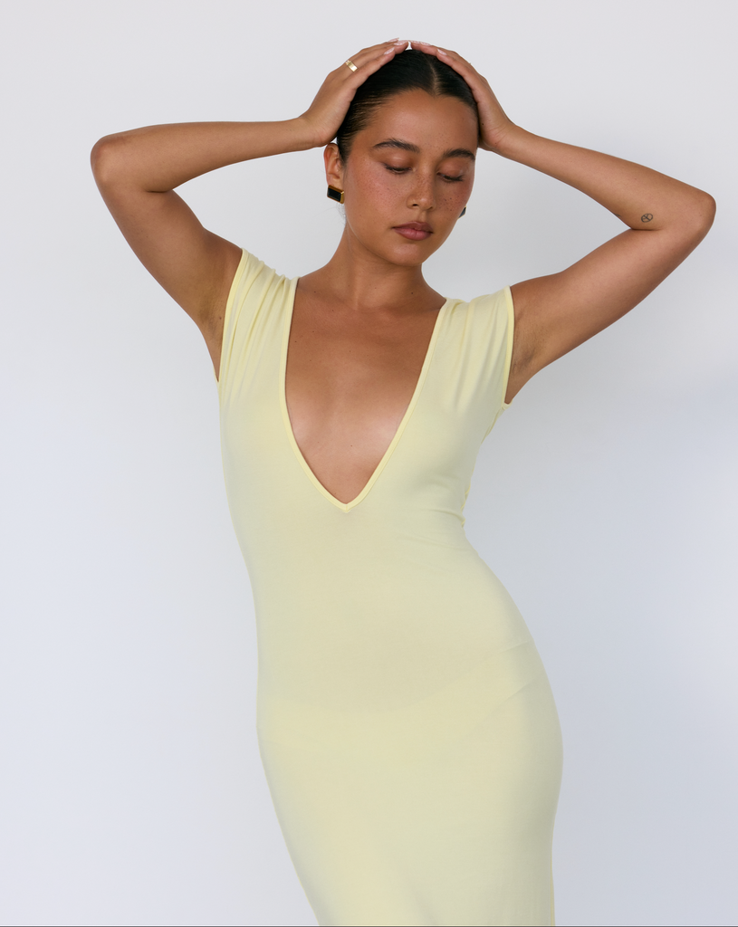 The Tate Plunge Midi is designed to push the boundaries of everyday minimalism. The dress features a deep neckline, buttery soft, semi-sheer fabric and a silhouette that perfectly hugs the waist. It's effortlessly sexy while remaining classic and elegant... truly the perfect balance. Wear it with or without the coordinating satin bra.
