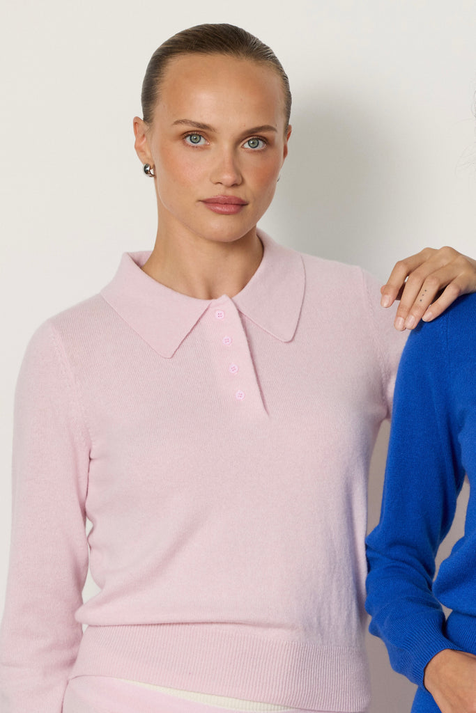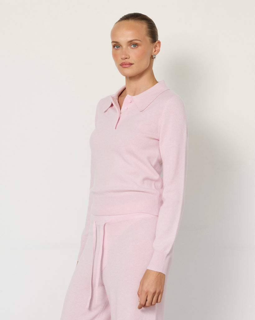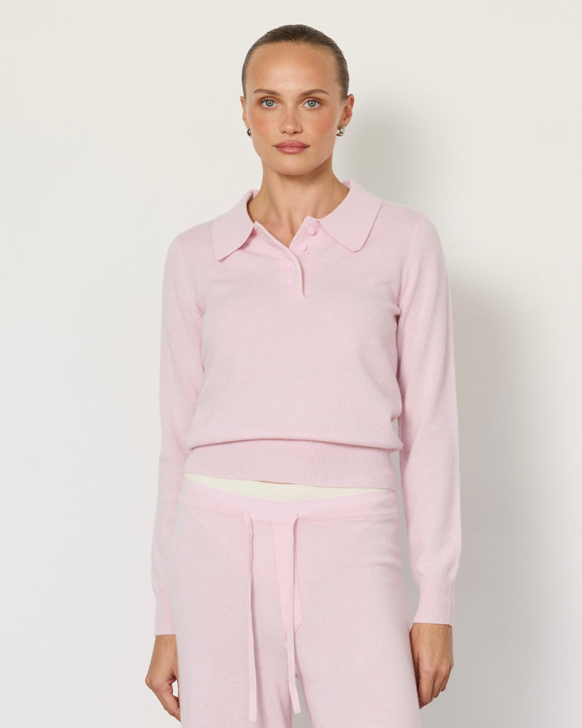 The Tove Polo brings a polished ease to everyday dressing. Spun from an ultra-soft cashmere blend, it sits neatly at the waist with a ribbed hem and buttons through the front. The open collar gives it a relaxed sensibility, making it just as effortless with trousers or denim as it is with the matching Tove Pants.