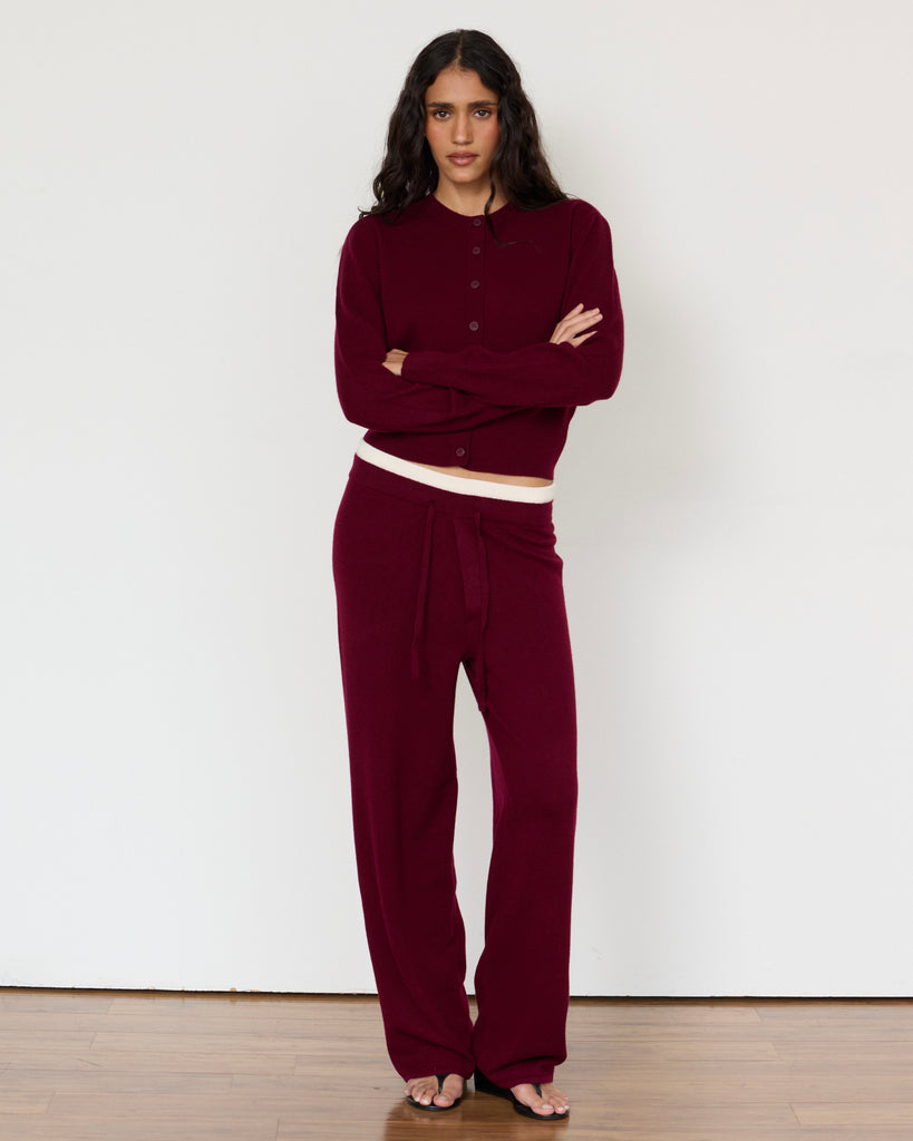 The Tove Layered Pant redefines loungewear. These cool-weather favorites feature a mid-waist, straight leg and unique layered detail that instantly elevates any look. Knit in a buttery cashmere blend for softness and an effortless, fluid drape, the Tove Pants are best styled with a matching polo, cardigan or pullover.
